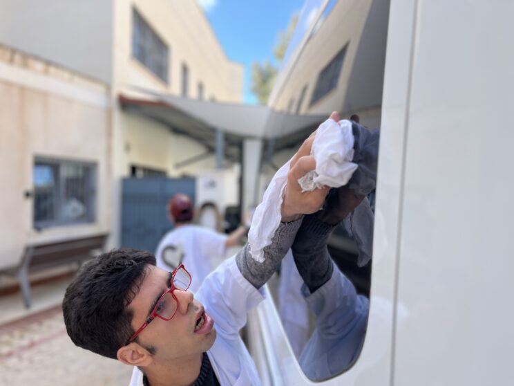 Además de estos talleres, hay otros tres que se llevan a cabo fuera de las instalaciones del centro y supone una ventana a la inclusión laboral y social ofreciendo una serie de servicios a la comunidad: lavado de coches, limpieza de espacios públicos o embotellado de productos de limpieza, entre otros.