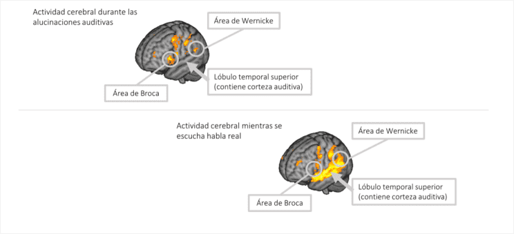 la Dra. Paola Fuentes-Claramonte, el Dr. Peter J. McKenna, la Dra. Edith Pomarol-Clotet y sus colaboradores de la fundación para la investigación FIDMAG Hermanas Hospitalarias, la Universitat Pompeu Fabra de Barcelona e investigadores de cuatro centros de Hermanas Hospitalarias de Cataluña (Centro Hospitalario Benito Menni CASM, Hospital Sant Rafael, Hospital Sagrat Cor y Hospital Mare de Dèu de la Mercè). Una investigación en la que utilizaron la neuroimagen funcional (resonancia magnética funcional) para estudiar qué partes del cerebro se activan tanto durante la experiencia de voces como en la percepción del habla real. Se instruyó a quince pacientes con diagnóstico de esquizofrenia que experimentaban alucinaciones de forma casi continua para que pulsaran un botón dentro del escáner cada vez que oyeran una voz, y otro botón en respuesta al oír habla real con características semejantes a sus propias voces. Sorprendentemente, mientras el habla real provocó una activación fuerte a lo largo de la corteza temporal superior, que alberga la corteza auditiva, la experiencia de alucinaciones auditivas no provocó ninguna activación en estas regiones. En cambio, se evidenciaron activaciones provocadas por las alucinaciones en zonas implicadas en el lenguaje, incluyendo las áreas clásicas de Broca y Wernicke. Estas y otras zonas contiguas también juegan un papel fundamental en la memoria de corto plazo. Según la Dra. Edith Pomarol-Clotet, directora de FIDMAG e investigadora del proyecto “Con estos resultados se puede descartar que la experiencia de alucinaciones auditivas se base en un mecanismo perceptivo. Más bien, parece que se trata de una perturbación del lenguaje y/o las funciones que sirven para mantener el habla en la consciencia.” La clave de esta investigación e alucinaciones auditivas en pacientes con esquizofrenia nuevo enfoque radica en una mayor comprensión de los sustratos biológicos de las alucinaciones, así como en la valoración de los efectos a nivel cerebral de nuevas dianas terapéuticas, que podrán utilizarse como pruebas complementarias al diagnóstico. Esto es crucial para el desarrollo de nuevos tratamientos no farmacológicos como la estimulación cerebral profunda (DBS) y las terapias psicológicas.